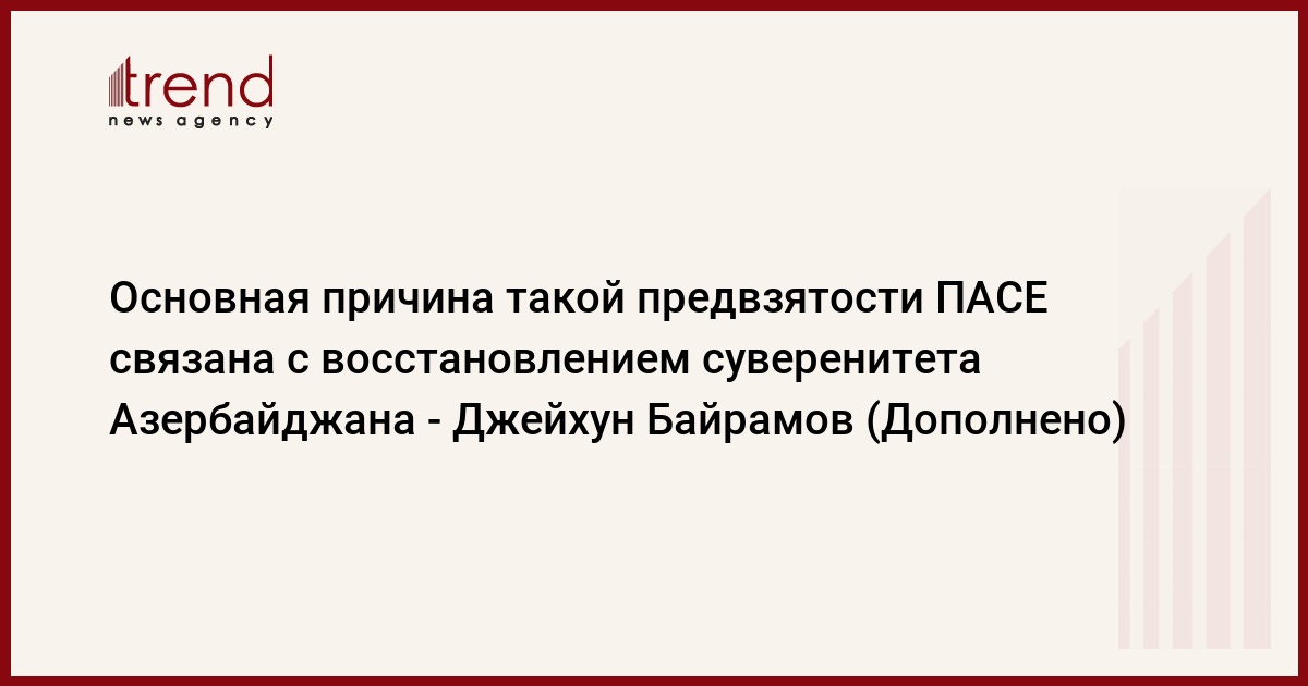 БАКУ /Trend/ - Полностью согласен с тем, что основная причина такого предвзятого поведения Парламентской ассамблеи Совета Европы (ПАСЕ) связана с восстановлением территориальной целостности и суверенитета Азербайджана.