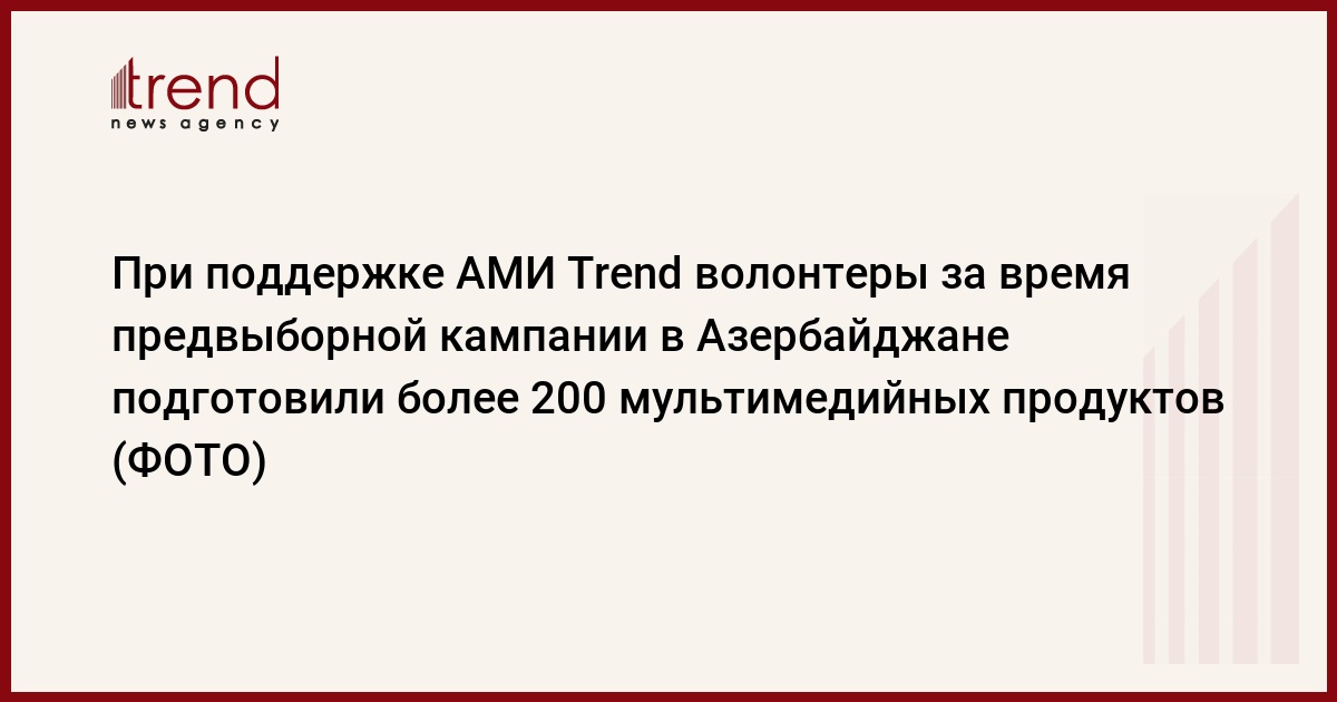 БАКУ /Trend/ - При поддержке АМИ Trend волонтеры, вовлеченные в агитационный процесс в преддверии внеочередных президентских выборов в Азербайджане, с 15 января по 6 февраля подготовили более 200 мультимедийных продуктов.