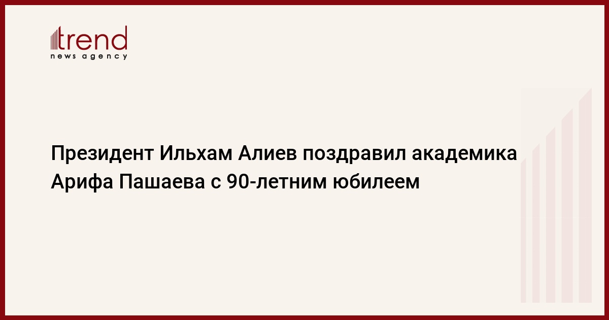 БАКУ /Trend/ - Президент Азербайджанской Республики Ильхам Алиев направил поздравительное письмо академику Арифу Пашаеву в связи с 90-летним юбилеем, сообщает в четверг Trend.