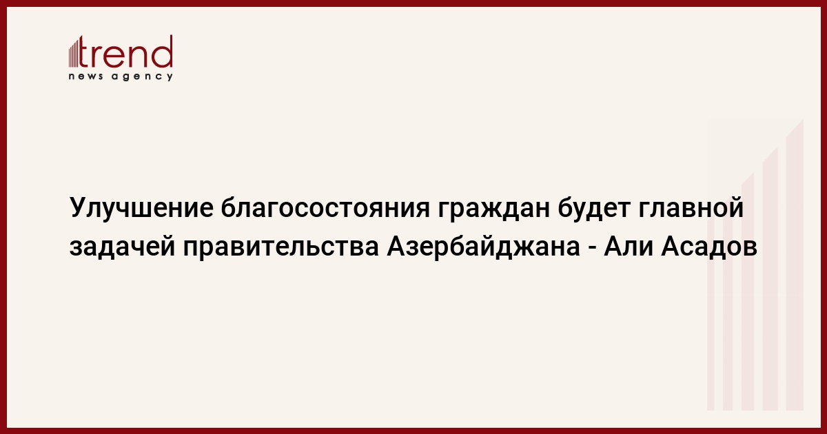 БАКУ /Trend/ - Улучшение благосостояния граждан Азербайджана, в том числе усиление социальной защиты семей шехидов и инвалидов войны, будет главной задачей правительства.