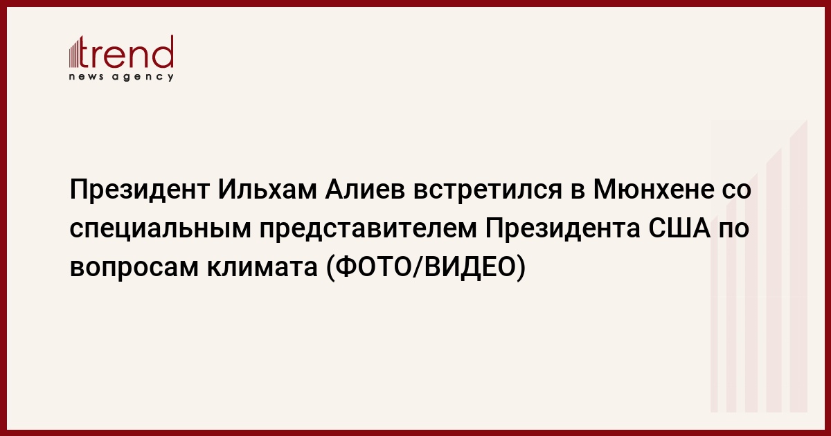 БАКУ/Trend/ - 17 февраля в Мюнхене по обращению противоположной стороны состоялась встреча Президента Азербайджанской Республики Ильхама Алиева со специальным представителем Президента США по вопросам климата Джоном Керри.