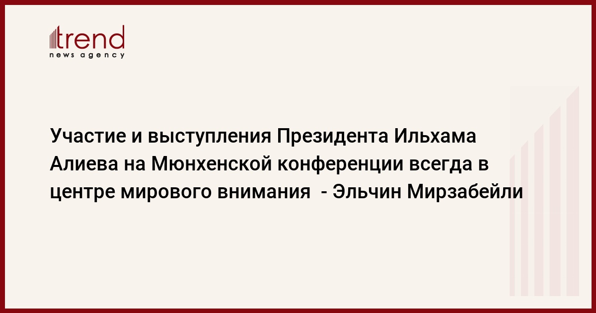 БАКУ /Trend/ - Участие и выступления Президента Ильхама Алиева на Мюнхенской конференции по безопасности всегда вызывают интерес и находятся в центре внимания ведущих мировых СМИ, авторитетных экспертов по вопросам внешней политики и энергетики.
