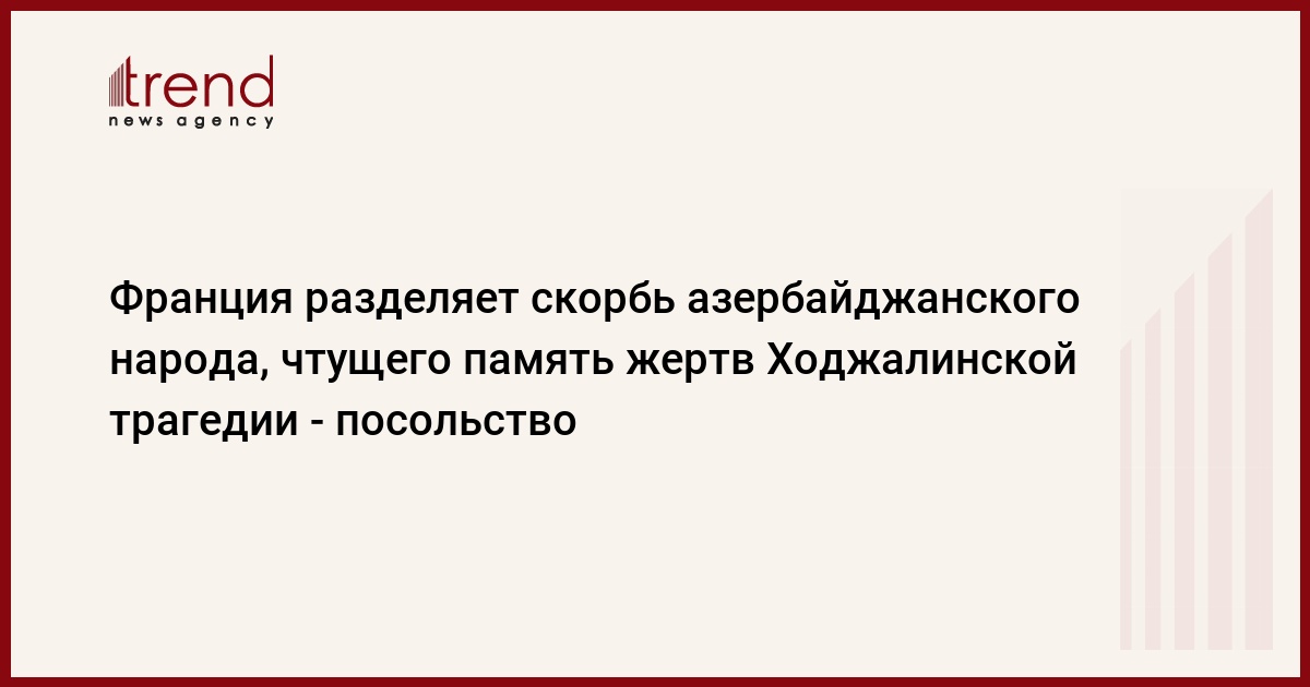 БАКУ /Trend/ - Франция разделяет скорбь азербайджанского народа, чтущего сегодня память жертв Ходжалинской трагедии.