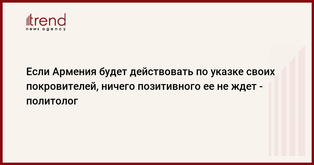 БАКУ /Trend/ - Если Армения пойдет по пути своих нынешних покровителей и будет действовать по их указке, то ей не стоит ожидать никаких позитивных событий.