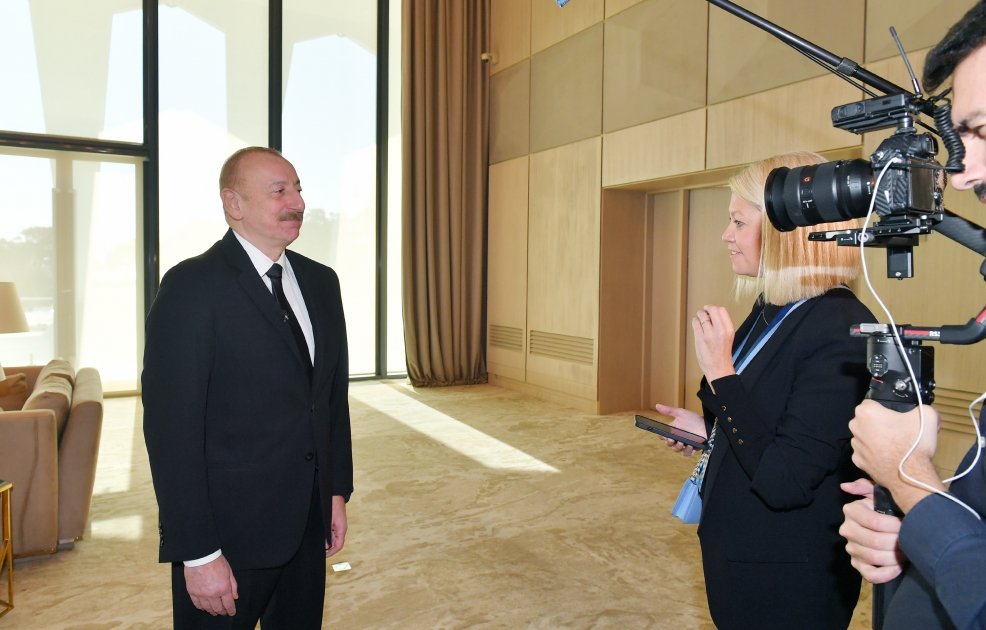 Президент Ильхам Алиев: Да, конечно. Мы должны немного изменить наши представления об этом, так как это не наша вина, что мы являемся страной с ископаемым топливом. Думаю, наша заслуга как раз-таки в том, что нам удалось избежать так называемого нефтяного проклятия, с которым столкнулись многие страны с запасами нефти и газа. Мы превратили нефть в развитие. Нам удалось обеспечить справедливое распределение богатств. За последние двадцать лет мы сократили уровень бедности в Азербайджане с 50% до 5%. И всё, что вы видите здесь, в Баку, - это абсолютно новое развитие инфраструктуры и улучшение условий жизни людей. К сожалению, сегодня ископаемое топливо представляется чем-то опасным, плохим, а страны, которые обладают этими ресурсами, должны считаться виноватыми в этом. Мое послание заключалось в следующем: давайте оценку нашим действиям, тому, как мы обращаемся с этими ресурсами, как мы используем доходы для удовлетворения потребностей людей и стимулирования "зелёной" повестки дня. Надеюсь, моё послание будет услышано.