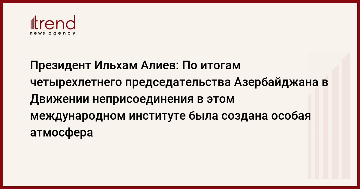 БАКУ /Trend/ - По итогам четырехлетнего председательства Азербайджана в Движении неприсоединения в этом втором по величине после ООН международном институте, объединяющем 120 стран, была создана особая атмосфера.