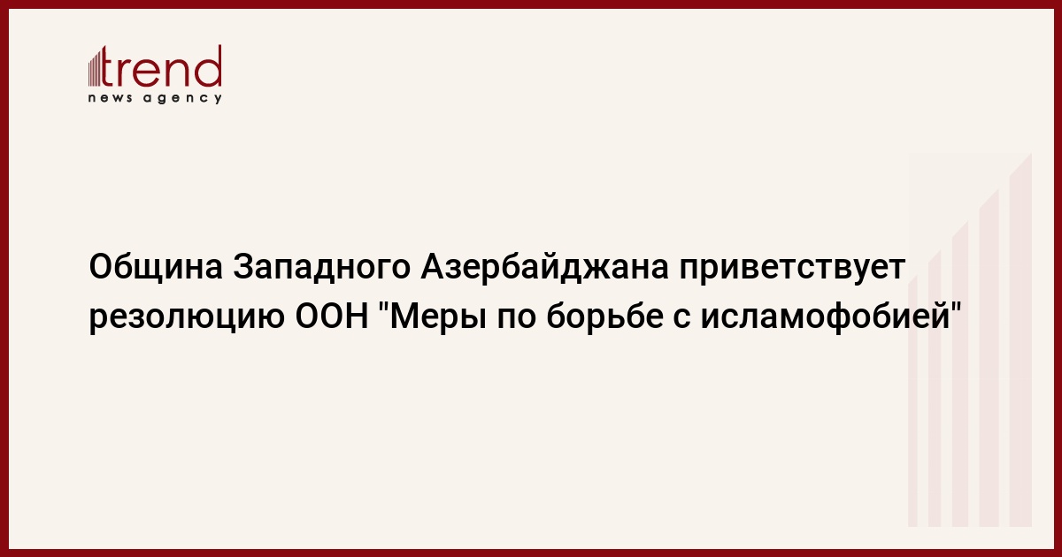 БАКУ /Trend/ - 15 марта Генеральная Ассамблея Организации Объединенных Наций (ООН) приняла резолюцию "Меры по борьбе с исламофобией". Являясь одной из первых жертв исламофобии, Община Западного Азербайджана искренне приветствует эту резолюцию.