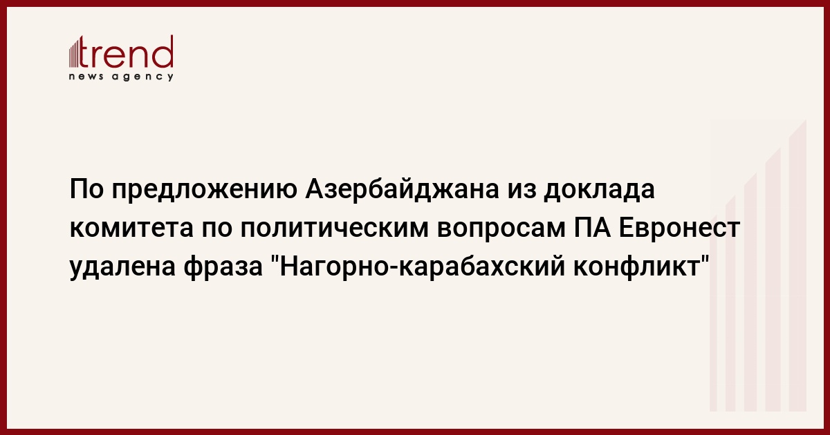 В результате изменений, предложенных азербайджанской делегацией и принятых большинством голосов, из доклада были исключены такие фразы, как "Замороженный Нагорно-Карабахский конфликт", "Ссылаясь на Алма-Атинскую декларацию в определении азербайджано-армянских границ", "мирные переговоры ведутся только при посредничестве Брюсселя".