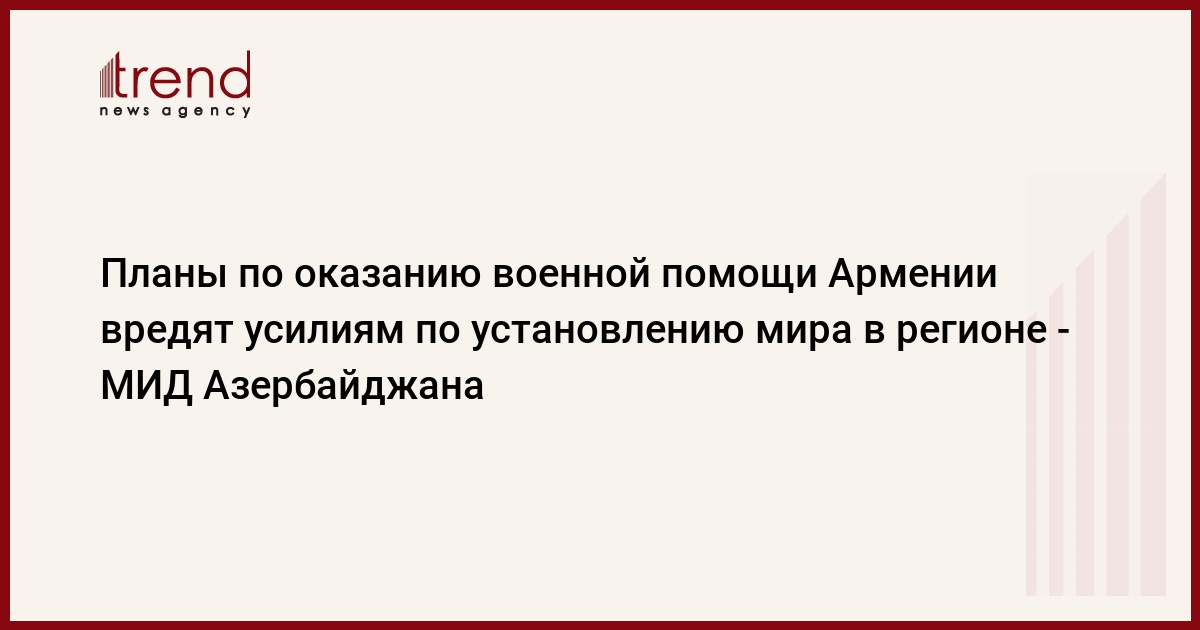 БАКУ /Trend/ - Планы по оказанию военной помощи Армении в рамках Европейского фонда мира вредят усилиям по установлению мира в регионе.