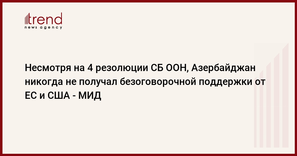 БАКУ /Trend/ - Несмотря на 4 резолюции СБ ООН, Азербайджан никогда не получал безоговорочной поддержки от ЕС и США.