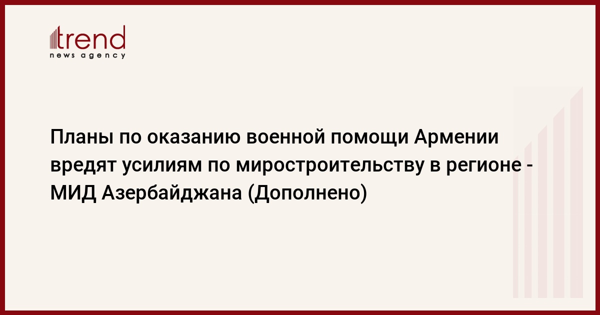 БАКУ /Trend/ - Планы по оказанию военной помощи Армении в рамках Европейского фонда мира вредят усилиям по миростроительству в регионе.