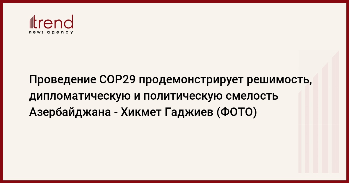 Помощник Президента отметил, что проведение COP29 продемонстрирует, что Азербайджан, как страна, обладающая ресурсами ископаемого топлива, проявит решимость, и одновременно дипломатическую и политическую смелость: «Это также демонстрирует нашу сильную и твердую волю. Азербайджан показал, что мы полны решимости, наряду с углеводородными ресурсами, хотим также быть сторонниками зеленой энергии и готовы внести свой вклад в эту концепцию».