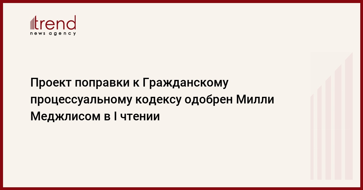 БАКУ /Trend/ - Милли Меджлис (парламент) в первом чтении принял предложенную поправку в Гражданский процессуальный кодекс Азербайджана, касающуюся определения процессуальных оснований рассмотрения представления исполнительного лица об аресте судом имущества должника.
