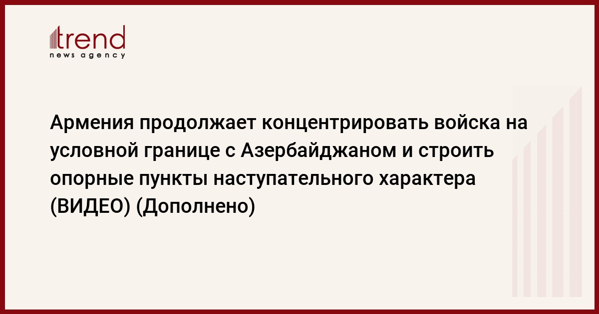 Как сообщили Trend в министерстве обороны Азербайджана, сосредоточение Арменией войск вдоль условной границы и создание опорных пунктов наступательного характера, создание долговременных огневых точек на различных направлениях, строительство фортификационных сооружений были зафиксированы имеющимися в распоряжении азербайджанских подразделений специальными техническими средствами и посредством визуального наблюдения.