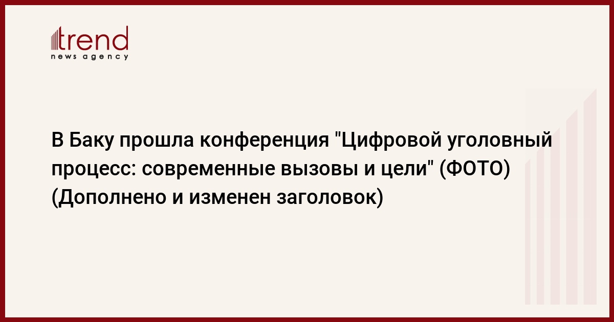 БАКУ /Trend/ - В Генеральной прокуратуре Азербайджана состоялась конференция на тему "Цифровой уголовный процесс: современные вызовы и цели".