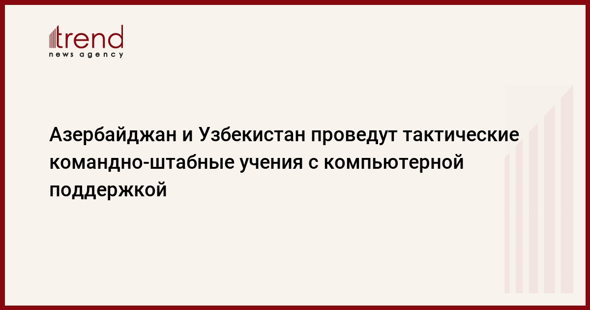 БАКУ /Trend/ - В соответствии с «Планом двустороннего сотрудничества на 2024 год, подписанным между министерством обороны Азербайджанской Республики и министерством обороны Республики Узбекистан», в течение нынешнего года между двумя странами будут проведены тактические командно-штабные учения с компьютерной поддержкой.