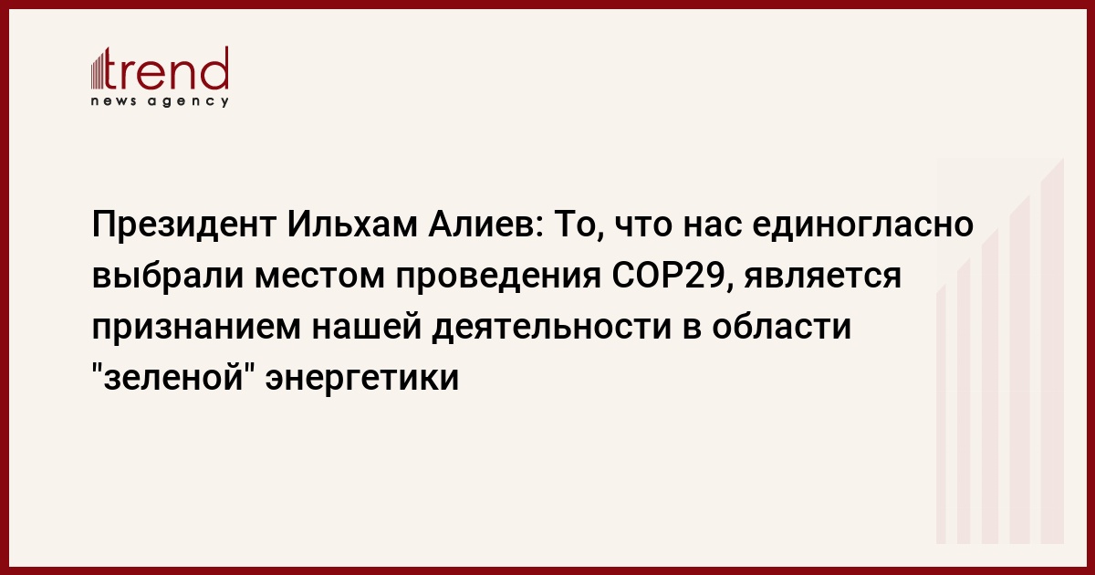 БЕРЛИН /Trend/ - То, что нас единогласно выбрали местом проведения COP29, является признанием нашей деятельности в области "зеленой" энергетики