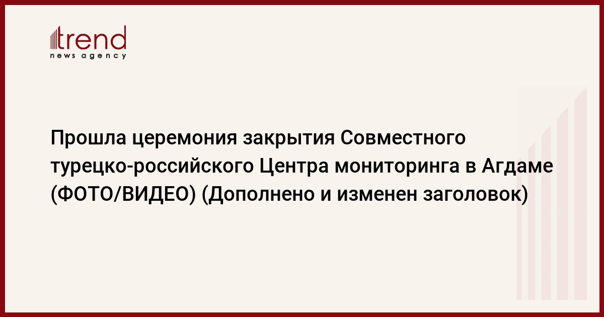 АГДАМ /Trend/ - 26 апреля прошла торжественная церемония закрытия Совместного турецко-российского Центра мониторинга, расположенного на территории Агдамского района.