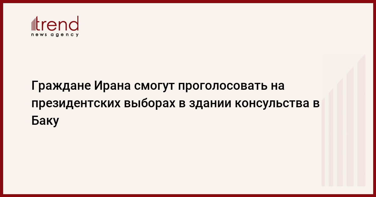 БАКУ /Trend/ - На внеочередных президентских выборах в Иране граждане этой страны, проживающие в Азербайджане, смогут принять участие в голосовании в здании консульства Ирана в Баку на улице Шарифзаде.