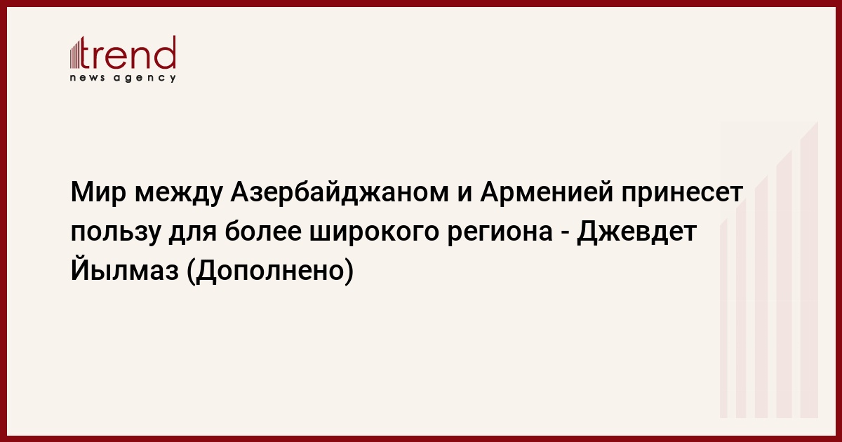 ШУША /Trend/ - Мир между Азербайджаном и Арменией принесет пользу для более широкого региона.