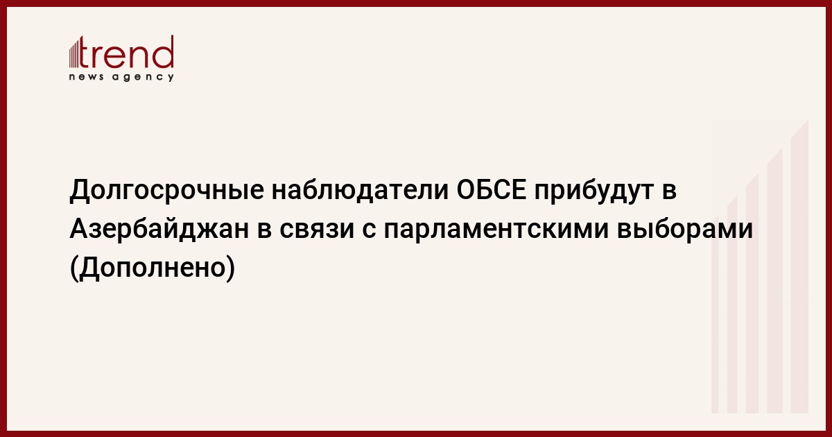 Отметим, что министерство иностранных дел Азербайджана направило приглашения 7 международным организациям для наблюдения за парламентскими выборами: БДИПЧ (Бюро по демократическим институтам и правам человека) ОБСЕ, Содружество Независимых Государств (СНГ), Организация исламского сотрудничества (ОИС), ГУАМ, Молодежная организация Движение неприсоединения, Шанхайская организация сотрудничества (ШОС) и Организация тюркских государств (ОТГ).