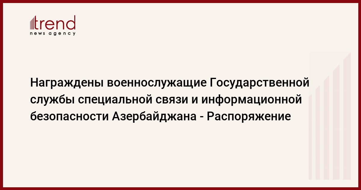 Как сообщает в четверг Trend, согласно распоряжению, военнослужащие Государственной службы специальной связи и информационной безопасности Азербайджанской Республики награждены за отличие при исполнении служебных обязанностей.