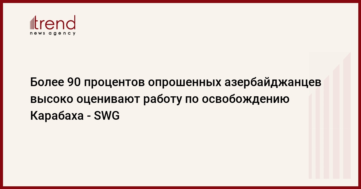 БАКУ /Trend/ - Более 90 процентов азербайджанцев высоко оценивают работу по освобождению Карабаха.