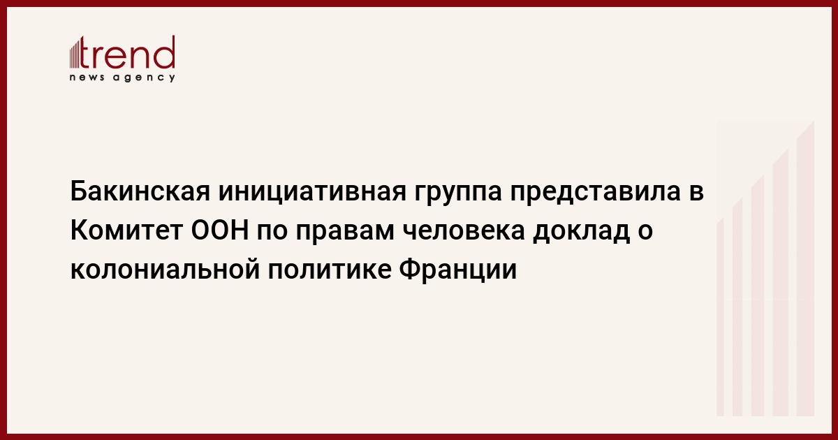 Бакинская инициативная группа представила в Комитет ООН по правам человека альтернативный доклад под названием "Устойчивое наследие французского колониализма продолжает существенно препятствовать реализации права на самоопределение: в лице Новой Каледонии (Канаки) и Французской Полинезии (Mā'ohi Nu)", разоблачающий колониальную политику Франции.