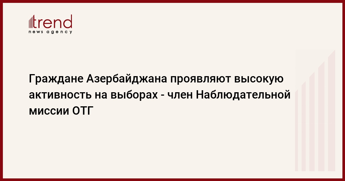 Как передает в воскресенье Trend со ссылкой на независимый медиа-центр Выборы 2024, об этом сообщил член наблюдательной миссии Организации тюркских государств (ОТГ) из Казахстана Адильхан Бижанов.