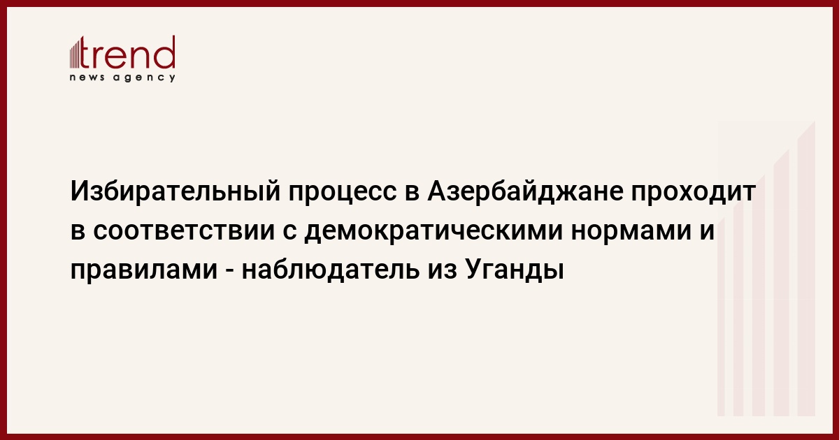 Как сообщает в воскресенье Trend, об этом заявил международный наблюдатель из Уганды, член молодежной организации Движения неприсоединения Джейкоб Эйеру, наблюдавший за процессом голосования на избирательном участке №2 Сабаильского избирательного округа №7.