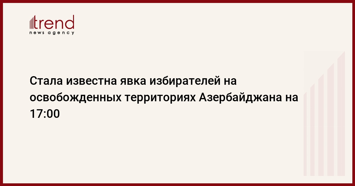 БАКУ/Trend/ - Стала известна явка избирателей на освобожденных территориях Азербайджана на 17:00 в ходе голосования в связи с проходящими сегодня внеочередными парламентскими выборами.