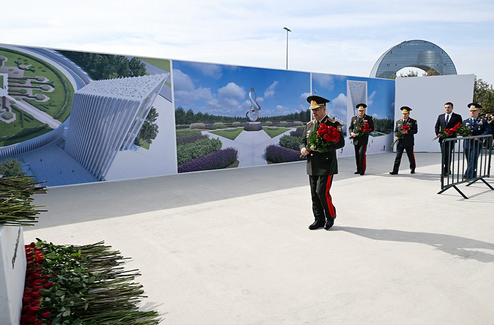 БАКУ /Trend/ - 27 сентября - в День памяти - руководящий состав министерства обороны Азербайджана и группа курсантов учебных заведений специального назначения при Национальном университете обороны посетили в Баку строящийся Парк Победы.