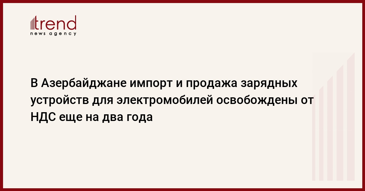 БАКУ /Trend/ - В Азербайджане с 3 до 5 лет увеличен срок освобождения от налога на добавленную стоимость (НДС) импорта и продажи электрических зарядных устройств второго и третьего уровней для автомобилей с электродвигателем.