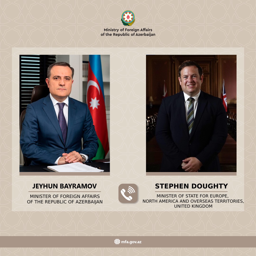 БАКУ /Trend/ - 31 октября состоялся телефонный разговор между министром иностранных дел Азербайджанской Республики Джейхуном Байрамовым и государственным министром Соединенного Королевства по вопросам Европы, Северной Америки и заморских территорий Стивеном Даути.