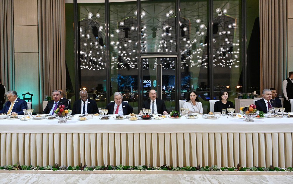 БАКУ /Trend/ - 12 ноября во дворце «Гюлистан» в Баку был устроен прием от имени Президента Азербайджанской Республики Ильхама Алиева в честь глав государств и правительств, участвовавших в церемонии открытия Саммита лидеров на 29-й сессии Конференции сторон Рамочной конвенции ООН по климату (COP29).