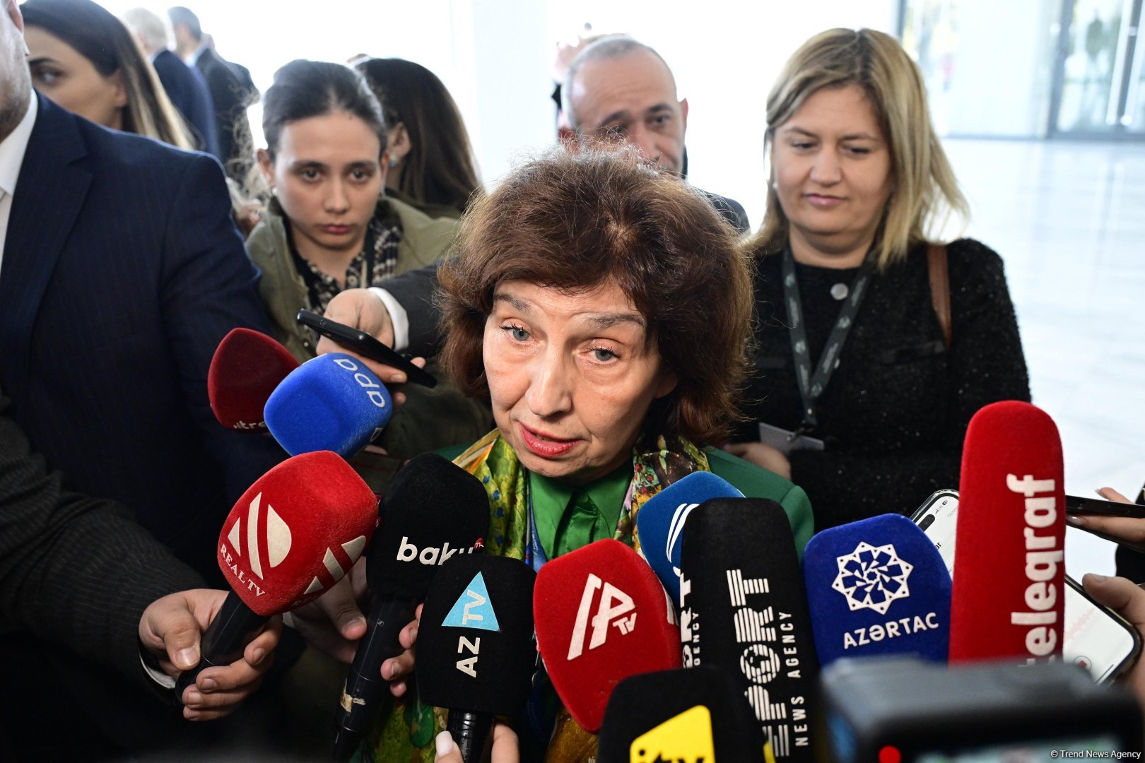 "Благодарю Президента Азербайджана Ильхама Алиева и Азербайджан за предоставленную возможность собраться здесь, а также за организацию этого важного форума, где мы можем обсудить вопросы мира, но также и войны - войны с природой, войны между народами. Это шанс сделать первый шаг к решению глобальных проблем", - сказала она.