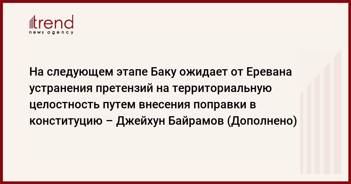 БАКУ /Trend/ - На следующем этапе Баку ожидает от Еревана устранения претензий на территориальную целостность Азербайджана путем внесения поправки в конституцию.