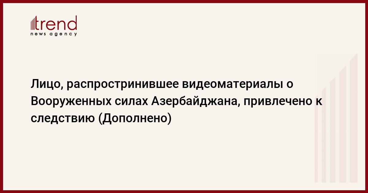 БАКУ /Trend/ - Лицо, распространившее видеоматериалы, относящиеся к Вооруженным силам Азербайджанской Республики, привлечено к следствию.