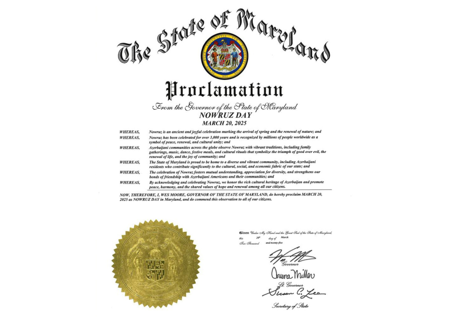 "Как и во многих странах мира, азербайджанские общины отмечают Новруз уникальными традициями - церемониями, символизирующими победу добра над злом, музыкой, танцами, праздничными трапезами и культурными мероприятиями. Штат Мэриленд гордится тем, что является домом для разнообразных общин, включая азербайджанцев, которые вносят значительный вклад в культурную, социальную и экономическую жизнь нашего штата. Празднование Новруза еще больше укрепляет нашу дружбу с азербайджанцами-американцами и их общинами. Признавая и празднуя Новруз, мы выражаем свое уважение к богатому культурному наследию Азербайджана и способствуем его популяризации", - говорится в заявлении.