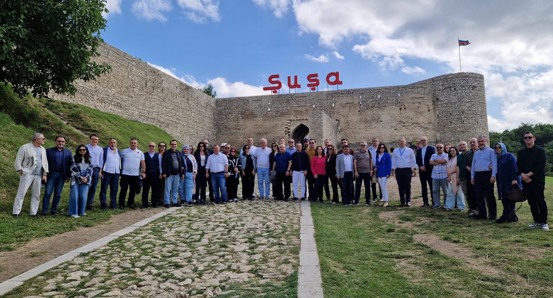 Гостям, посетившим Джыдыр дюзю, рассказали о ее историческом значении и о том, как героические азербайджанские солдаты поднялись по крутым скалам на эту территорию во время 44-дневной Отечественной войны и освободили Шушу от оккупации ценой своей жизни и крови.