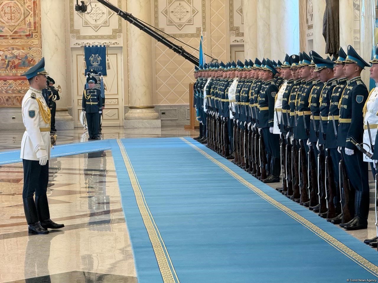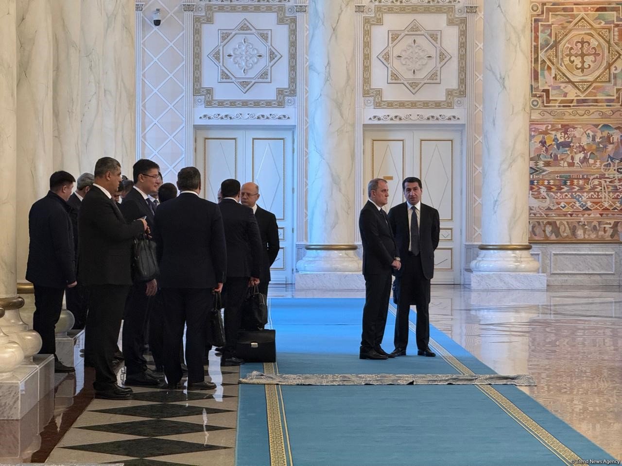 В парадном зале в Акорде - так называется резиденция Касым-Жомарта Токаева - шли последние приготовления к началу официальной встречи Ильхама Алиева. Оркестр раз за разом репетировал вступление к гимну Азербайджана, по залу расставили флаги двух стран, азербайджанская делегация выстроилась на отведенном ей месте.