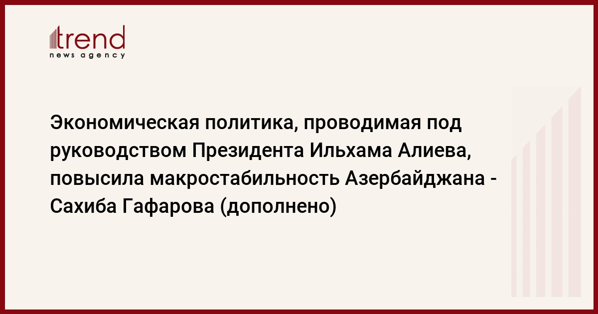 БАКУ/Trend/ - Реализуемая под руководством Президента Ильхама Алиева экономическая политика привела к повышению макроэкономической стабильности страны.
