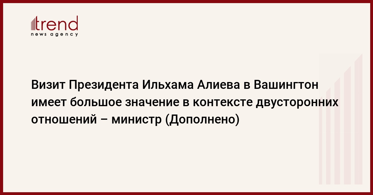 БАКУ /Trend/ - Визит Президента Ильхама Алиева в Вашингтон имеет большое значение в контексте двусторонних отношений.