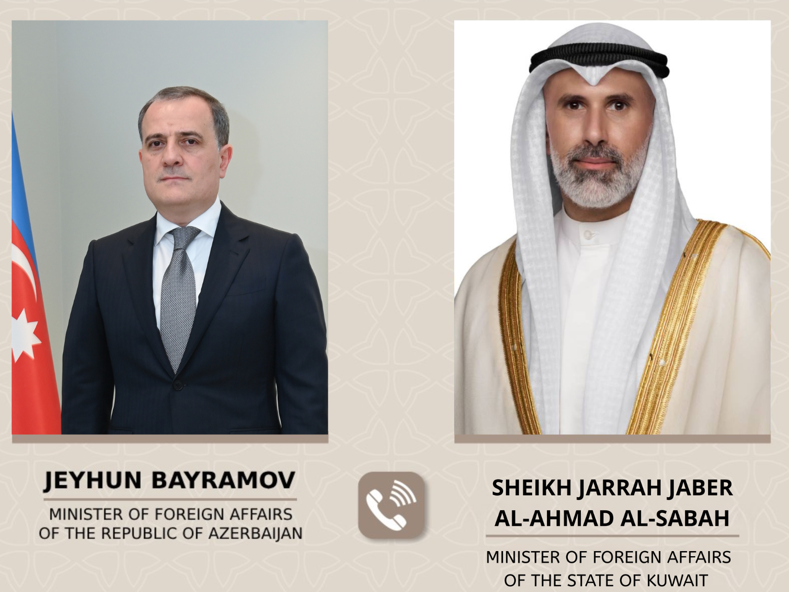 БАКУ /Trend/ - 2 марта состоялся телефонный разговор между министром иностранных дел Азербайджанской Республики Джейхуном Байрамовым и министром иностранных дел Государства Кувейт Шейхом Джаррахом Джабиром аль-Ахмедом аль-Сабахом.
