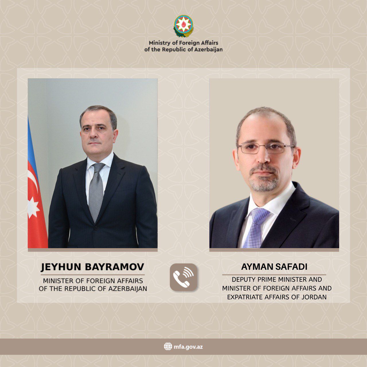 БАКУ /Trend/ - 2 марта состоялся телефонный разговор между министром иностранных дел Азербайджанской Республики Джейхуном Байрамовым и заместителем премьер-министра, министром иностранных дел Хашимитского Королевства Иордания Айманом ас-Сафади.