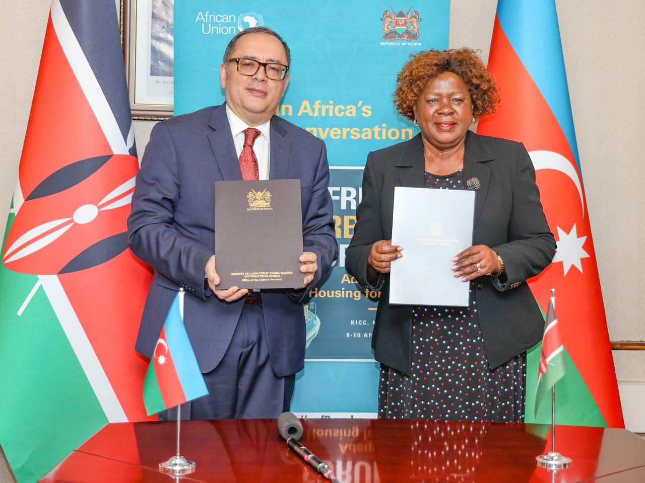 26 марта министр земельных ресурсов, общественных работ, жилищного строительства и городского развития Кении Элис Вахоме и посол Азербайджана в Кении Султан Гаджиев, одновременно являющийся постоянным представителем нашей страны при Программе ООН по населенным пунктам (ООН-Хабитат), подписали документ, оформляющий финансовый вклад AİDA.