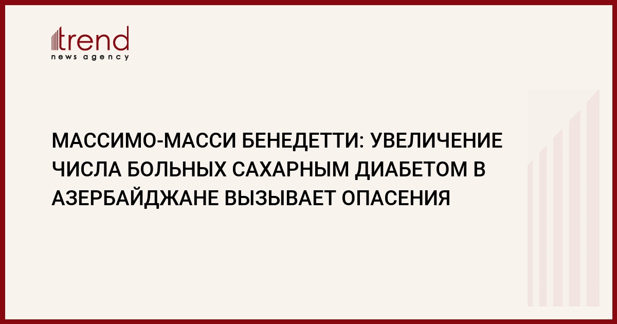 "Азербайджан по числу больных сахарным диабетом не уступает наиболее проблематичным странам мира",- сказал Массимо-Масси Бенедетти, подчеркнув, что если нынешние темпы заболеваемости не изменятся, то в ближайшие 20 лет в Азербайджане сложится очень опасная ситуация.