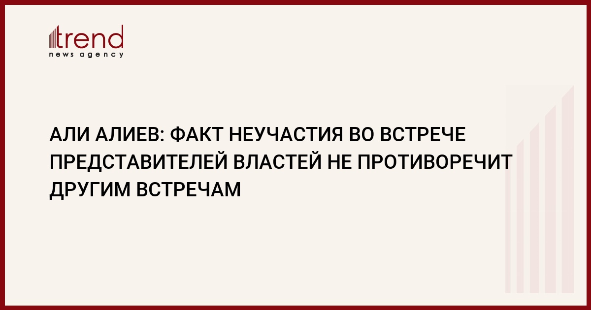 Он отметил, что факт неучастия в последней встрече власть-оппозиция представителей власти не влияет на процесс обсуждений и не изменит их результатов. По словам А. Алиева, как и на предыдущей встрече, темой последней встречи было осуждение фактов черного пиара.
