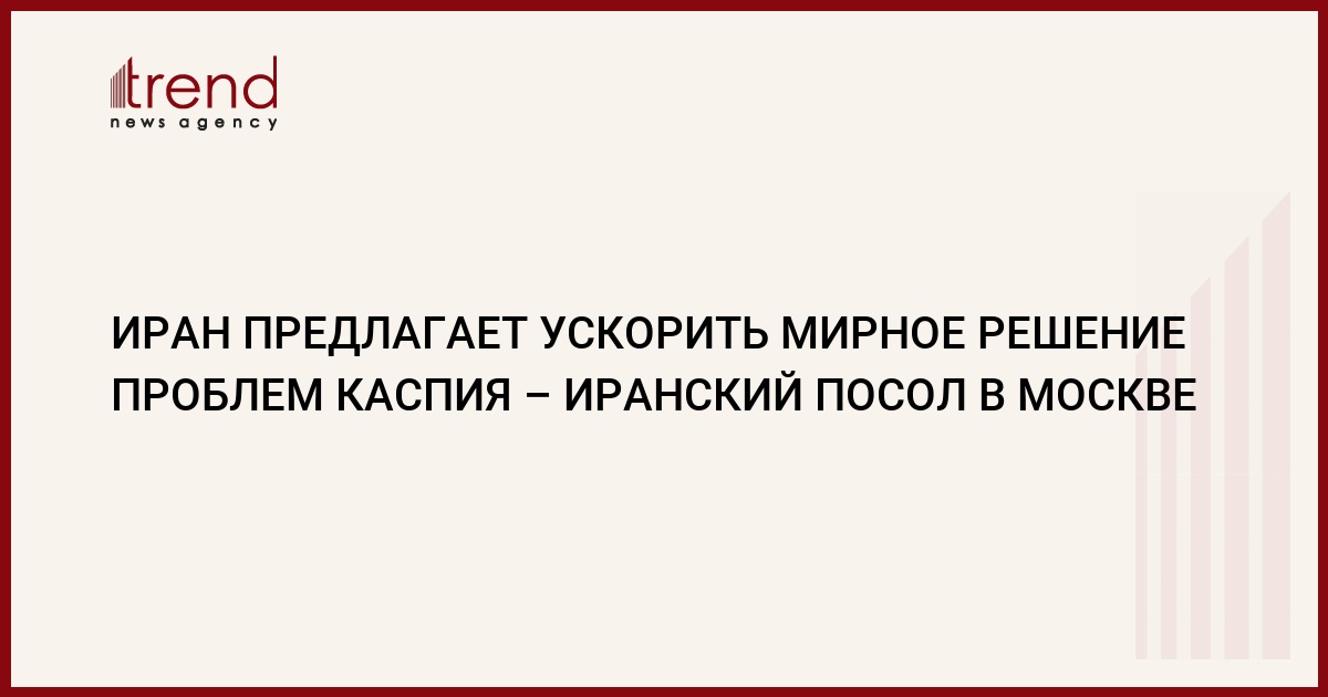 (ИТАР-ТАСС) - Иран "выступает за ускорение мирного решения проблем Каспия и использование для этого всех возможностей прибрежных стран".
