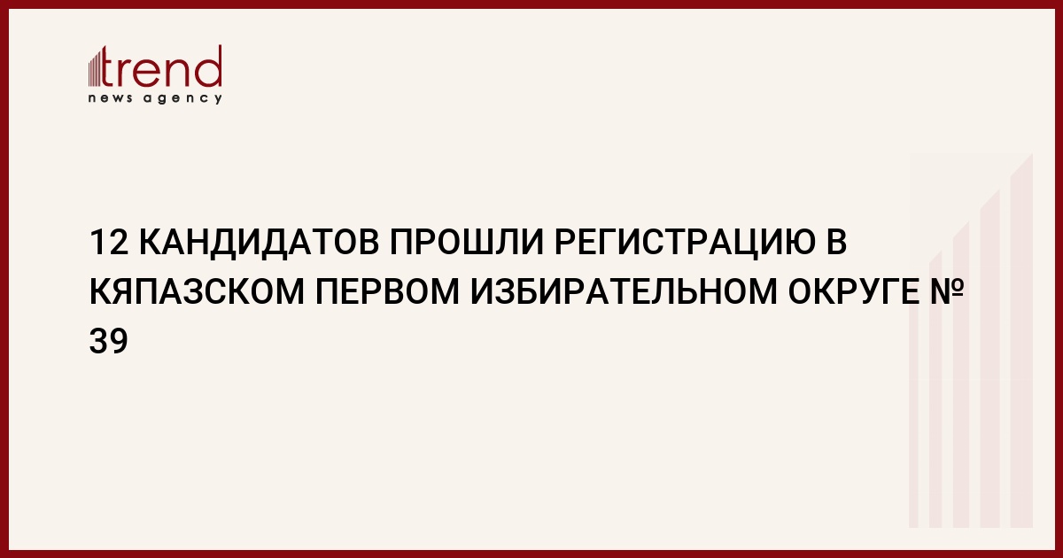 12 кандидатов прошли регистрацию в Кяпазском первом избирательном округе № 39 Гянджи, передает региональный корреспондент Trend . В целом по Гяндже идет процесс регистрации кандидатов.